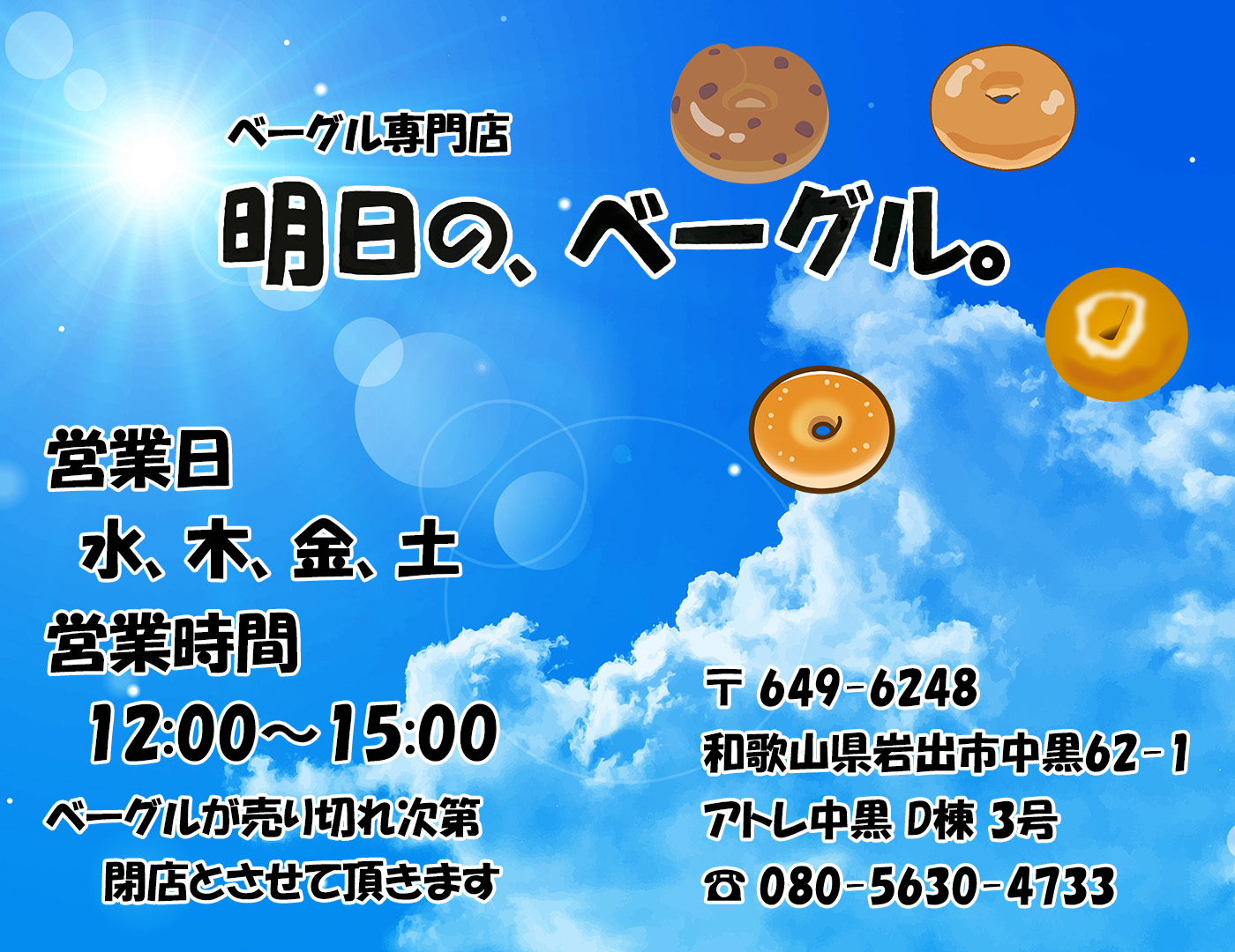 和歌山 岩出 ベーグル専門店 明日のベーグル ポポロマルシェ 古都華 和歌山メダカフェス 北ぶらリメメンバーマーケット